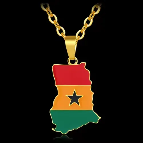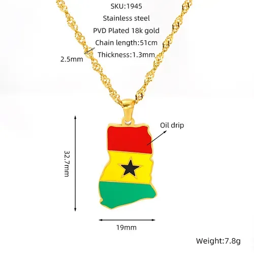 Ghana Map Chain Necklaces Stainless Steel 18K Gold Plated Enamel Ghana National Flag Map Pendant Necklace